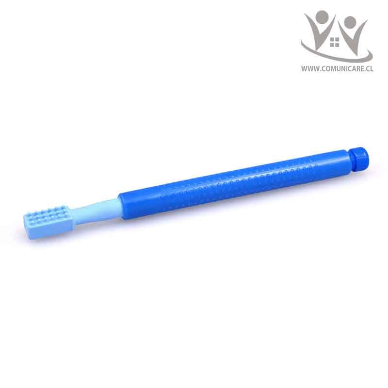 Este producto cuenta con un diseño innovador y liviano: posee una textura de bolitas para un agarre antideslizante, que a su vez puede ser usada a lo largo de las mejillas, los brazos y las manos. Cuenta con varios accesorios que pueden intercambiarse utilizando el mismo mango: cucharas lisas, con texturas, puntas de animalitos, cepillo tubular o con diferentes texturas en sus caras, entre otros útiles y divertidos accesorios.
