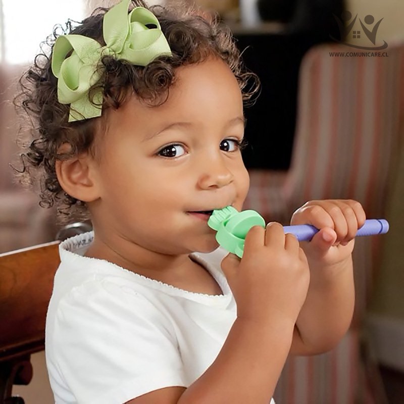 2.- Disminuye las aversiones a texturas/alimentos y a sensibilidades orales: El Z-Vibe también se recomienda para las personas hipersensibles. En estos casos, la vibración así como las diversas texturas pueden desensibilizar gradualmente la boca y disminuir aversiones orales y defensas sensorial.