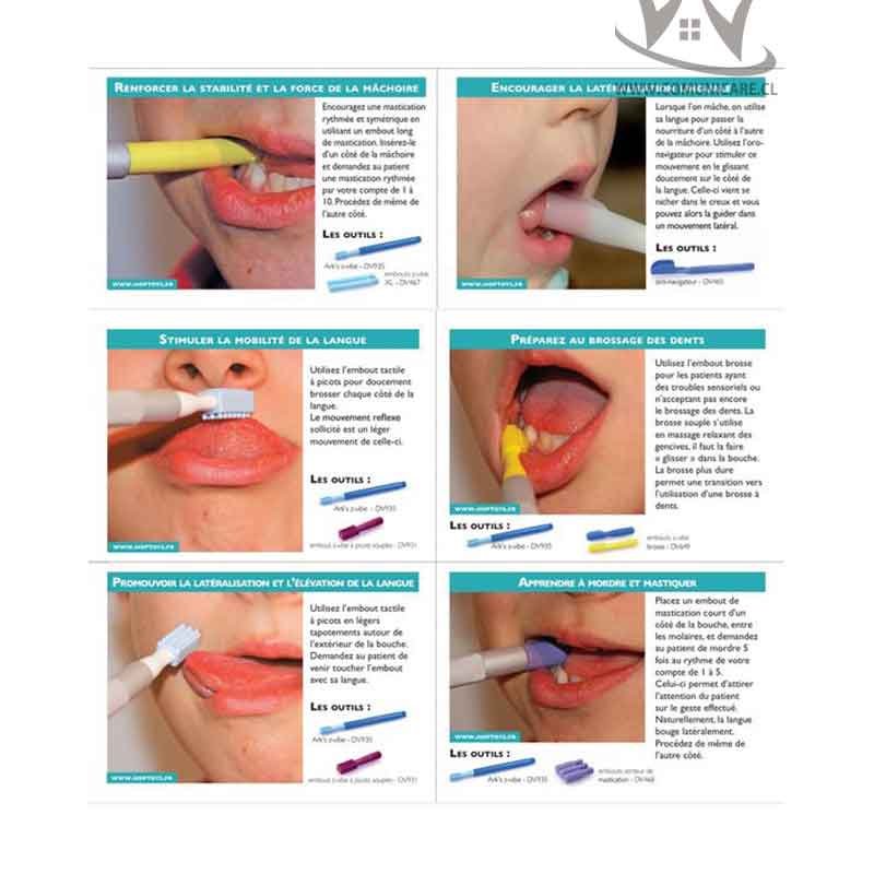 Terapeutas (y cuidadores capacitados) pueden utilizar esta herramienta para proporcionar señales táctiles específicas dentro de la cavidad oral, para enseñar a elevar la lengua, la lateralización, el cierre de los labios, la masticación rotatoria y mucho más. Además, la vibración proporciona un nuevo nivel de conciencia táctil para una retroalimentación sensorial adicional, que ayuda a despertar la boca y a darle mayor atención a movimientos específicos de la mejilla, la mandíbula, los labios y la lengua. La vibración también aporta calma, relajación y organización.