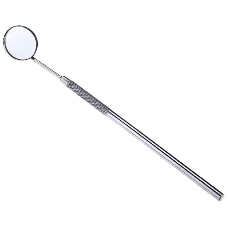 Resistente y de buena calidad, espejo con mango de acero inoxidable, 100% lavable y esterilizable, ideal para evaluaciones dentales y de órganos fonoarticulatorios, utilizado también para ver el estado laríngeo.