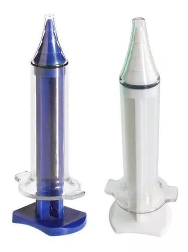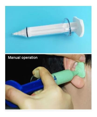 Jeringa ergonómica para tomar impresiones de moldes auditivos.